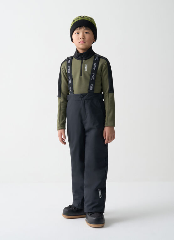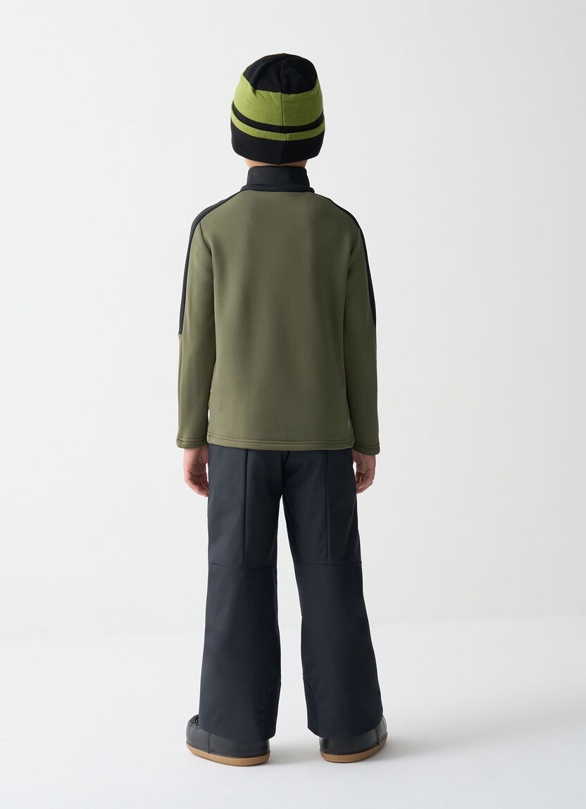 Made from soft, anti-pilling stretch fleece, this thermal sweatshirt is ideal for any boy during winter sports activities. The contrasting inserts give the garment an original and distinctive look, while the slightly high collar with half-zip fastening offers warmth and protection, even on the coldest days. A technical, versatile and comfortable garment, which is perfect for moving in style on the snow.