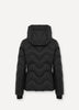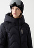Women’s ski jacket featuring the characteristic wavy quilting, made from 100% recycled stretch ripstop in a diamond design that's waterproof (15,000 mm waterproof rating) and breathable (15,000 g/m2/24hrs). Smooth stretch softshell inserts highlight the silhouette and facilitate movement. Optimal comfort is guaranteed by the stretch lining and soft down padding. Cosy adjustable hood for extra protection from the cold.
