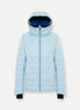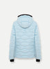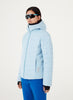 Women's ski jacket made in (15,000mm) and breathable (20,000 g/m2/24) mechanical two-way stretch ripstop fabric with micro weave and laminated semi-glossy look and waterproof (15,000mm) and breathable (15,000 g/m2/24) matt laminated mechanical stretch fabric. Padded in washed and sterilized down with a water-repellent treatment. The brilliant structure of the base fabric, which recalls the shape of the diamond, blends with the smooth parts and the ribbed ribbon that borders the hood, creating a pleasant combination of contrasts. There are many technical contents on this clean and essential garment. The recycled fabric and eco-friendly Teflon EcoElite™ water repellent treatment is part of the Colmar Green Path project, aiming to respect the environment as much as possible.