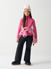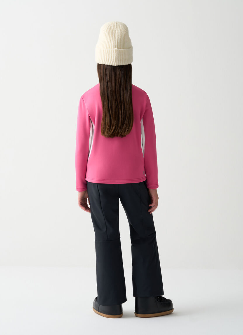 Sporty and feminine look with contrasting colored inserts, the girls' thermal sweatshirt offers unique style and enveloping warmth in soft fleece.