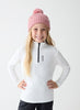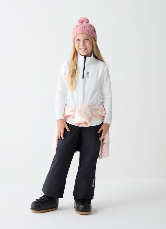 Girls’ half-zip sweatshirt made from stretch, pilling-resistant fleece. A technical garment that guarantees warmth and breathability, perfect on the ski slopes or for facing the coldest days in the city.