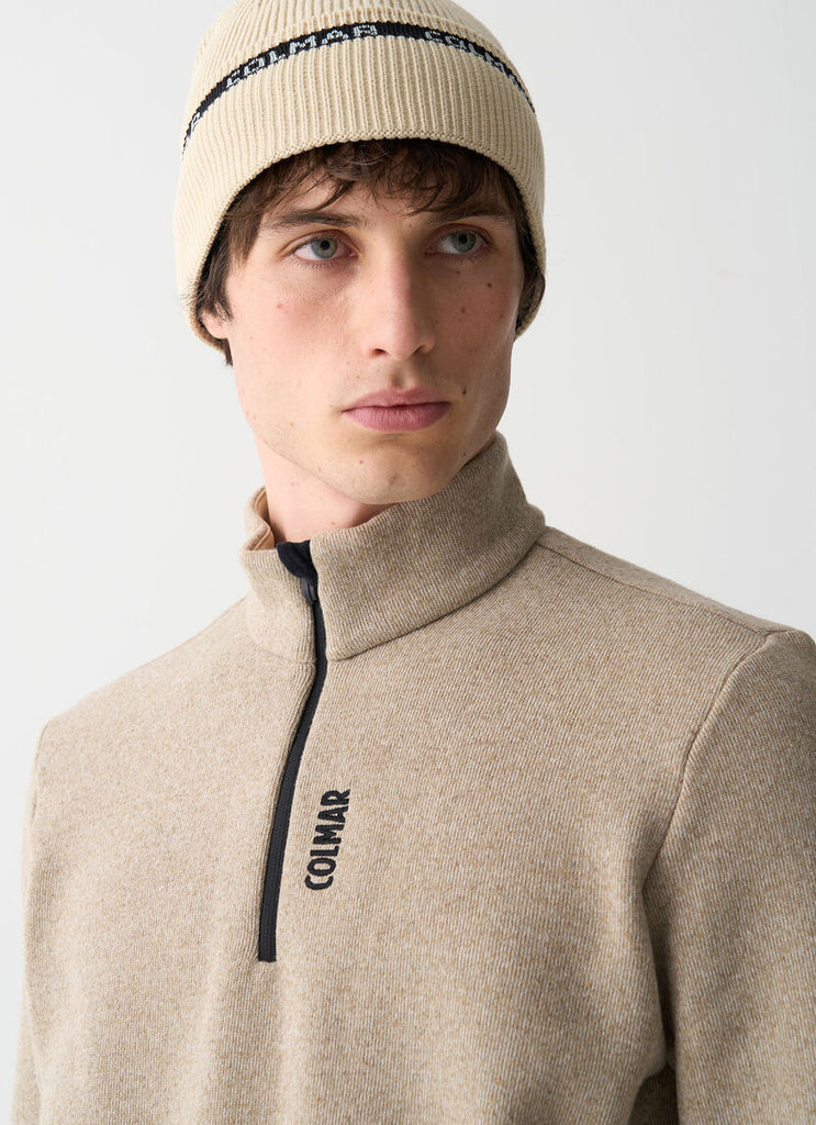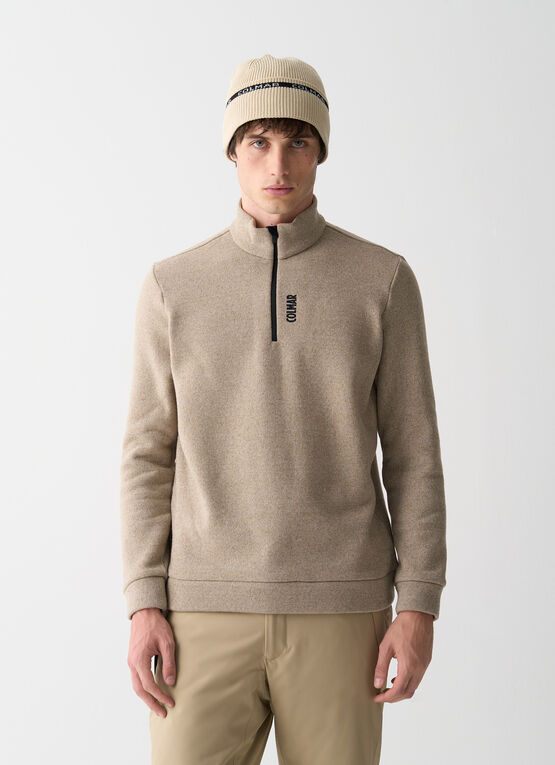 Comfort and style come together in this wool-blend ski sweatshirt, which puts a technical edge on the classic pullover. The high neck with half-zip completes the design, while the fleece interior ensures softness and practicality for facing winter in the mountains.