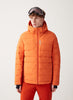 Men's ski jacket made from waterproof (15,000mm) and breathable (15,000 g/m2/24H) 100% recycled laminated stretch rip-stop fabric, and from waterproof (10,000mm) and breathable (10,000 g/m2/24H) stretch softshell fabric. Comfort and freedom of movement are the characteristic features of this style, embellished by a band bearing the brand name running along the back and sleeves to underline the transition between the two materials, giving the garment great personality. Double padding. The quilted part is padded with Microflock Re-padding, an innovative material made of 100% recycled polyester flakes that mimic the effect of down, while the softshell part contains Ecosoft padding at 100g/m2 and 85% recycled. The use of recycled fabric and wadding and the eco-friendly water repellent Teflon EcoElite™ treatment are part of the Colmar Green Path project,which aims to protect the environment.