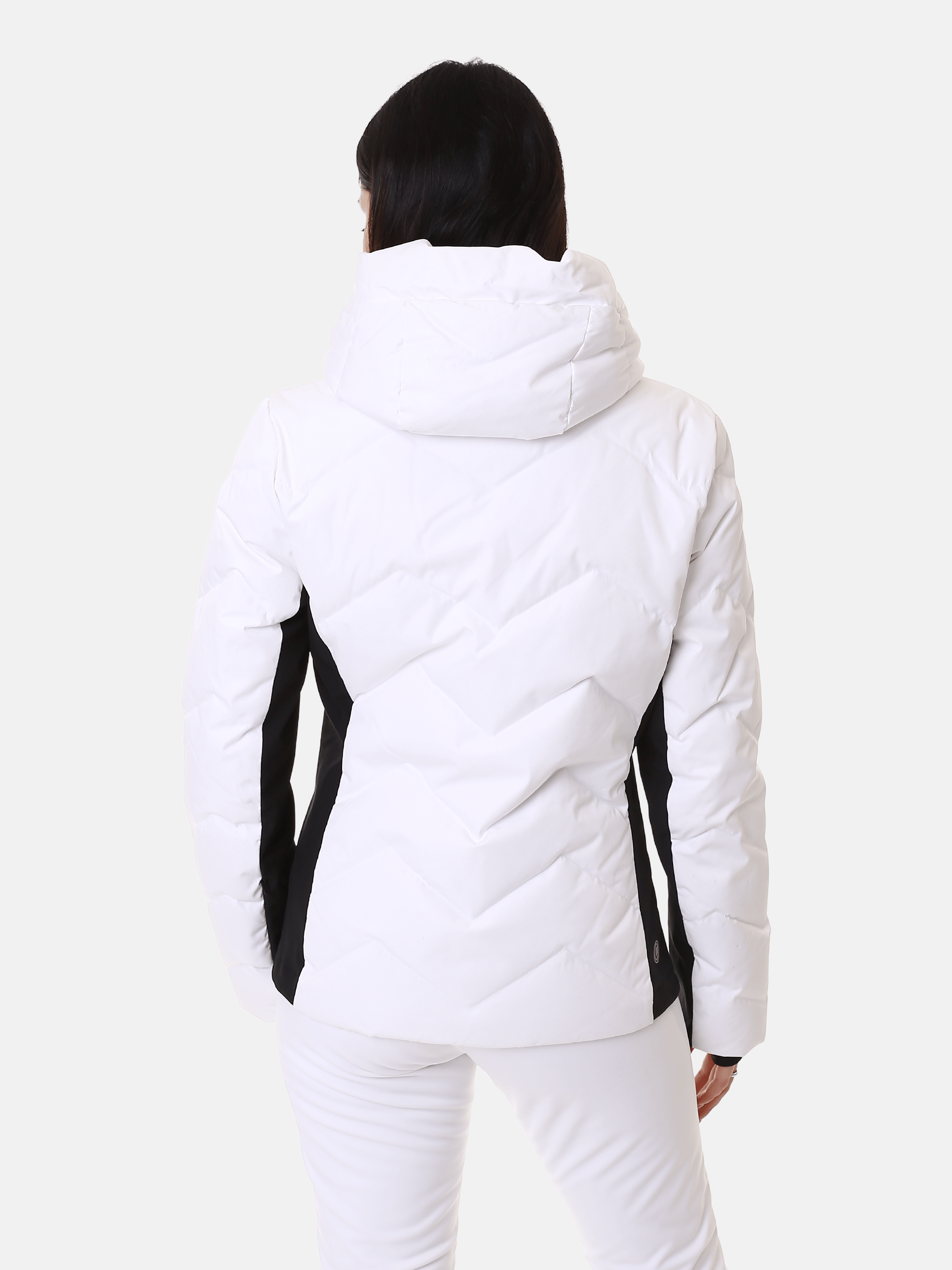 Women’s ski jacket made of 100% recycled stretch laminated fabric. Waterproof 15,000 mm and breathable 15,000 g/m2/24H