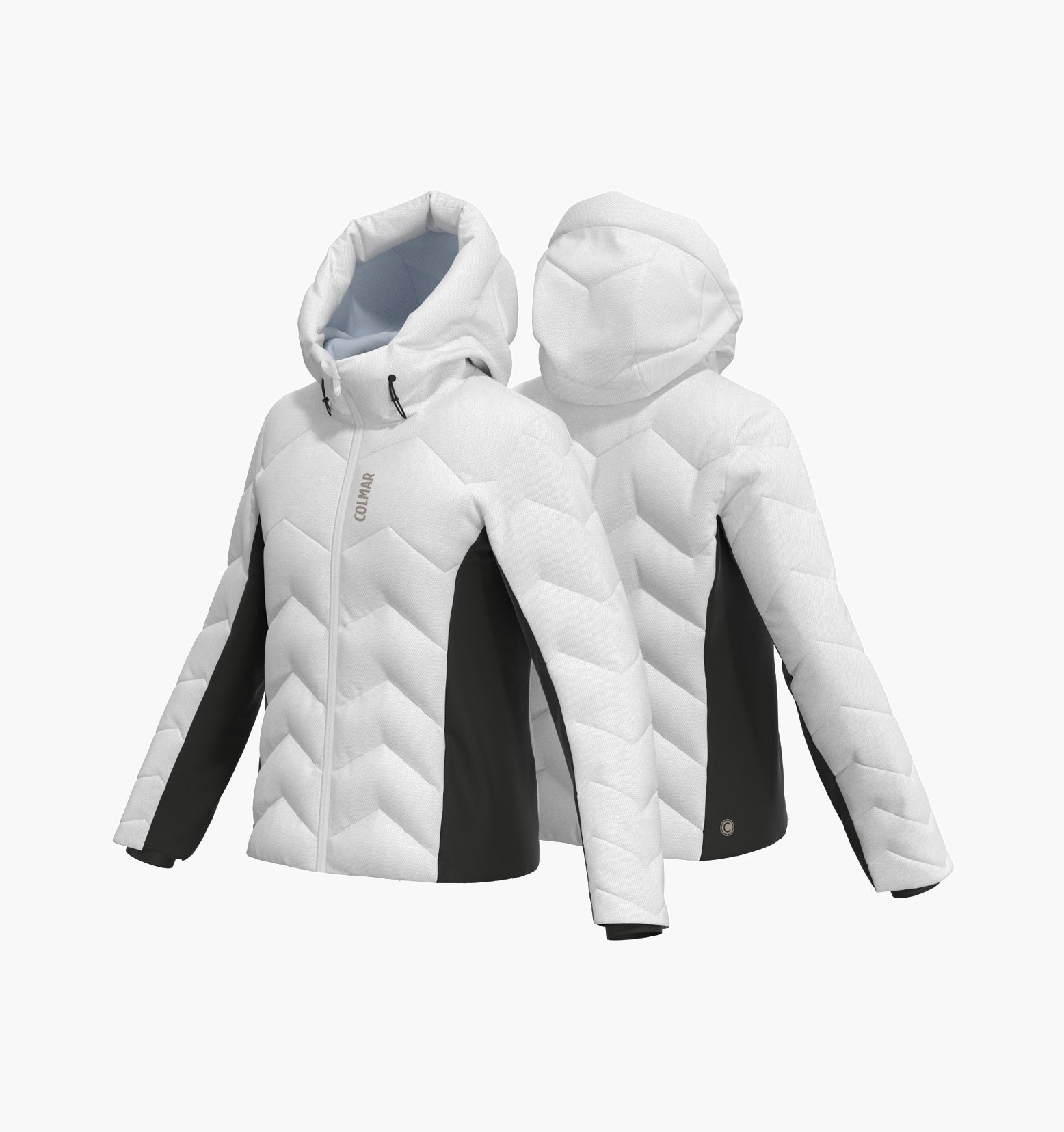 Padded in soft washed and sterilized down with a water-repellent treatment. Optimal comfort is guaranteed by the stretch lining and the soft, washed and sterilised down padding. Voluminous and enveloping with 80% duck down + 20% duck feathers, he drawstring-adjustable hood provides further protection against the cold. The use of recycled fabric and the eco-sustainable Teflon EcoElite™ water repellent treatment are part of the Colmar Green Path project, aiming to respect the environment as much as possible.