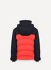 The mix of fabrics and padding makes this ski jacket top-performing. The main body is made from mechanical stretch fabric with 140 g Ecosoft padding, made from 85% post-consumer recycled fibres, while the contrasting details on the sides and back are quilted with 100% recycled Microflock wadding, which creates a soft and enveloping down effect. Versatile and dynamic, it is perfect for both winter sports and leisure time in the mountains, ensuring comfort and style on every occasion.