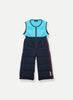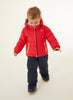 A bright, lively look for this baby ski suit made of textured fabric, laminated with breathable (20,000) and waterproof (20,000 mm) membrane, with high tear resistance. In addition to the graphene fibre lining, which helps to distribute heat evenly, the centre back, collar and hood are lined with soft fleece, as is the body of the salopettes. Eco-sustainable wadding and salopettes with fully opening zip in sizes 12 and 24 months, for maximum practicality. The ensemble is designed according to the safety standard for children's clothing. The use of recycled wadding and fabric and the eco-sustainable water repellent Teflon EcoElite™ treatment are part of the Colmar Green Path project, aiming to respect the environment as much as possible.