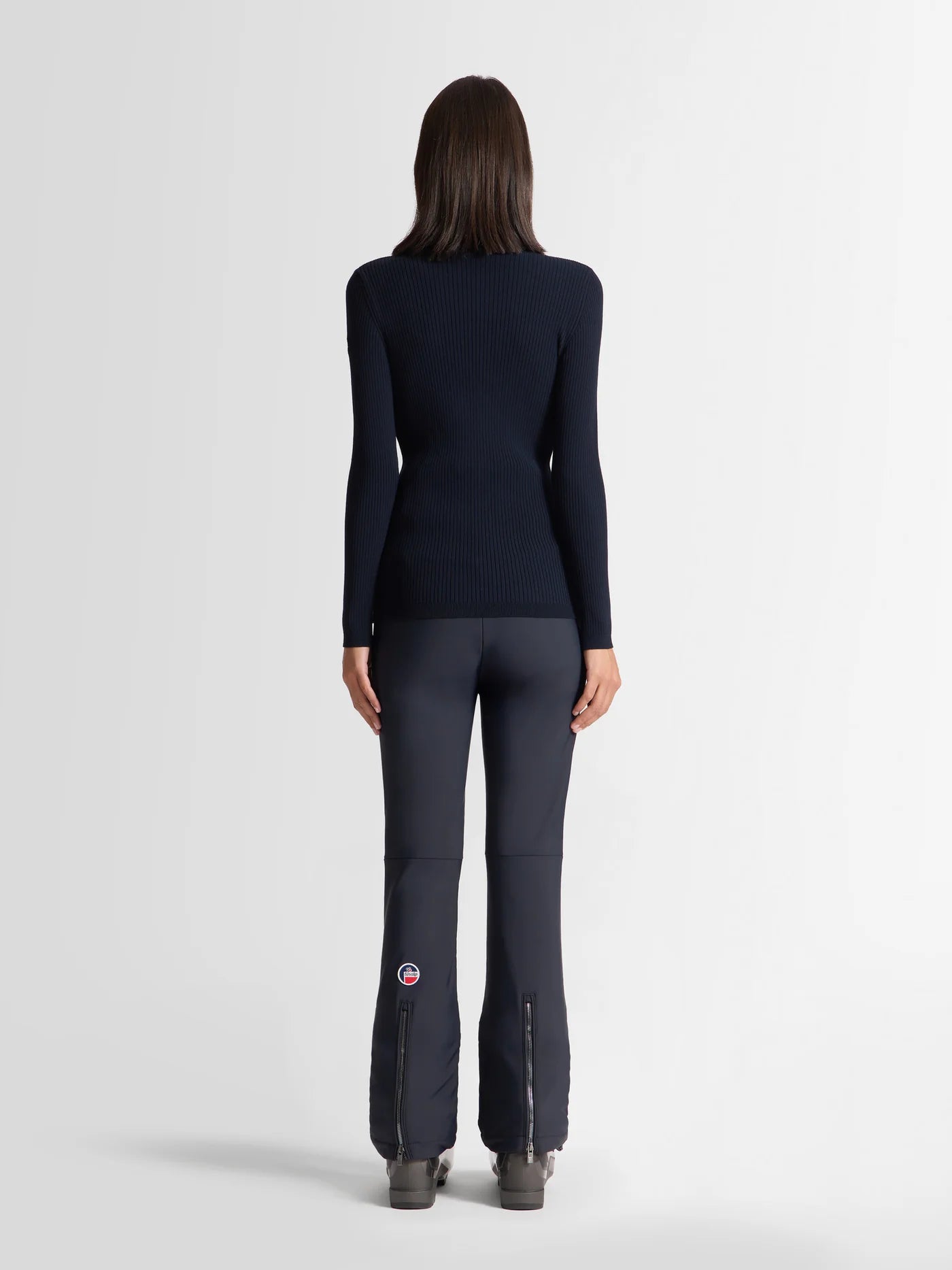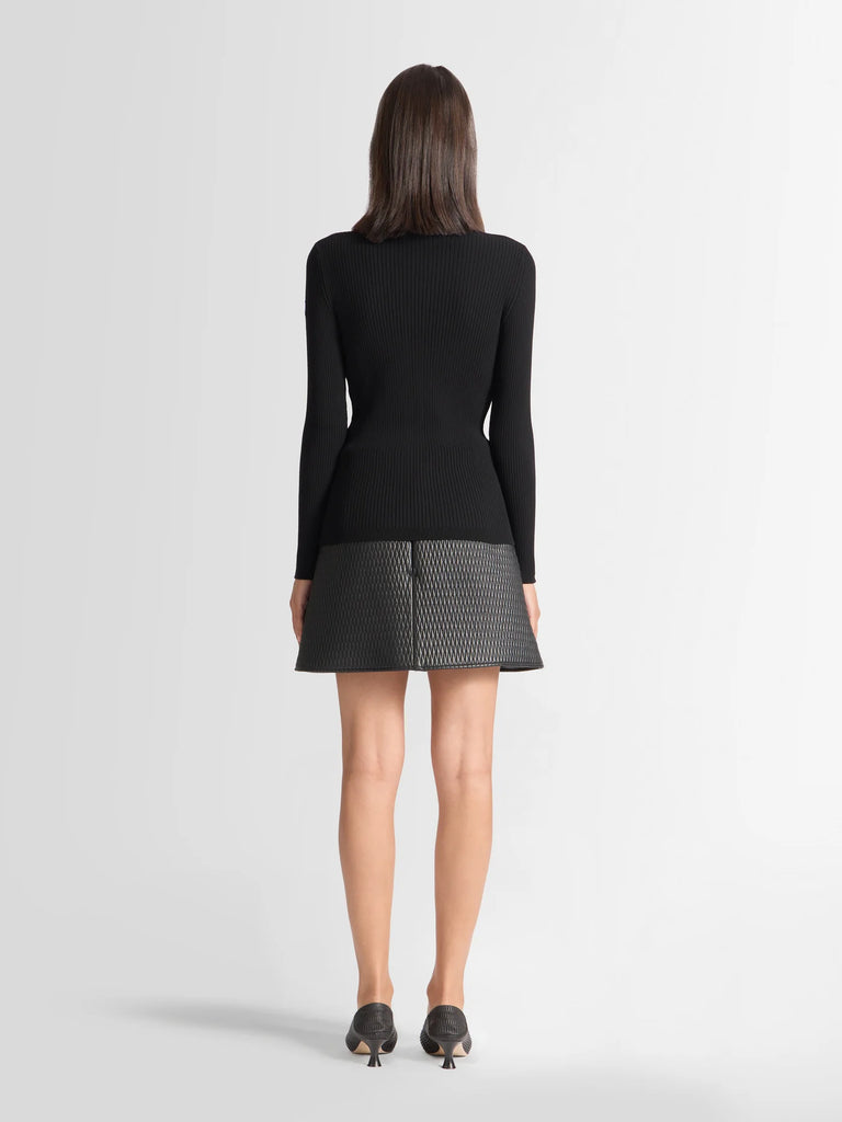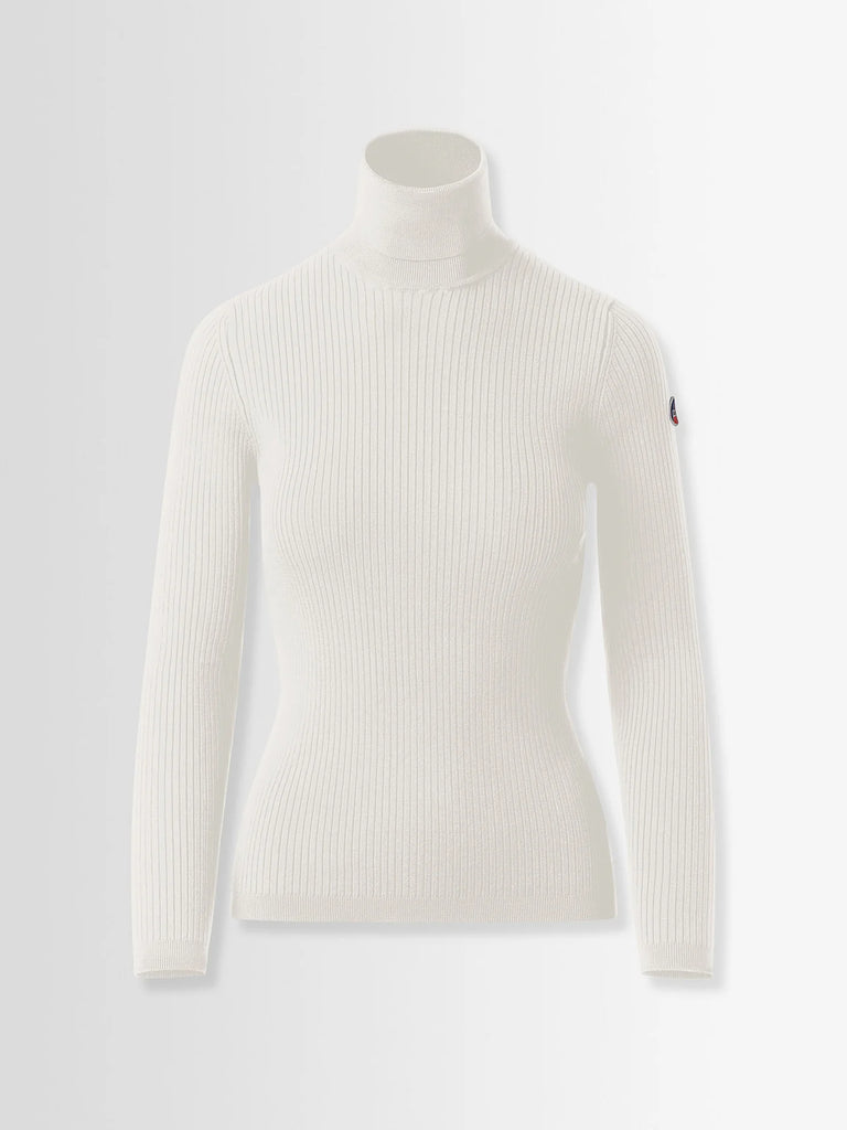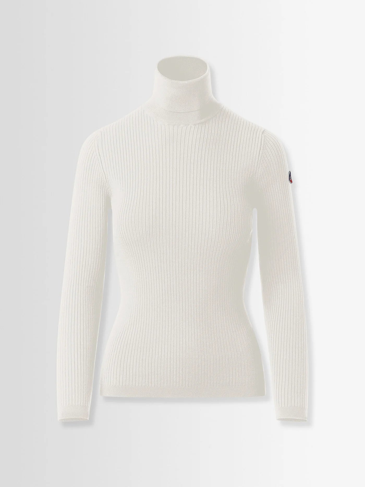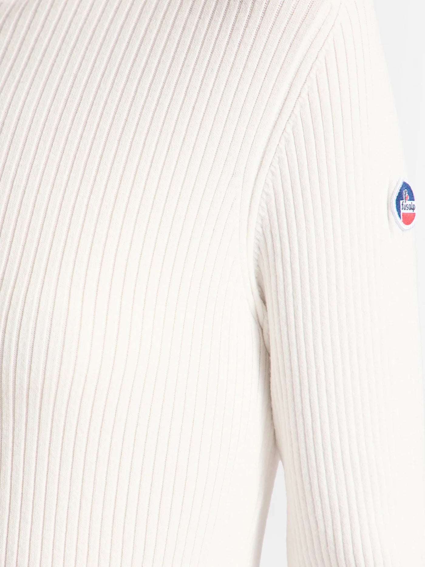 A super-versatile piece of our wardrobe, ANCELLE adapts easily to all our needs. Its high collar emphasizes the oval of the face and its slim fit aesthetizes the silhouette. ANCELLE is knitted in an Élité viscose ribbed knit.