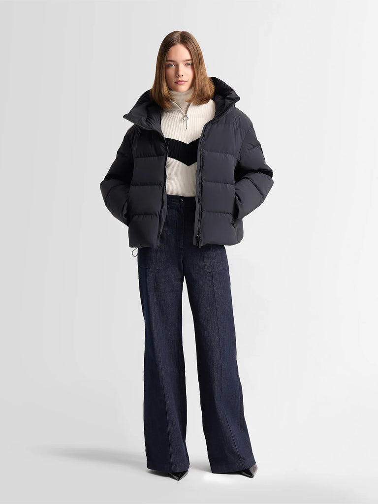 Designed to be versatile, this warm puffer jacket adapts to all your needs: in the city, it adds a fashionable and feminine touch when paired with an elegant skirt or tailored trousers; in the mountains and on the ski slopes, it accompanies you with the same ease, offering warmth and protection during your snowy getaways.