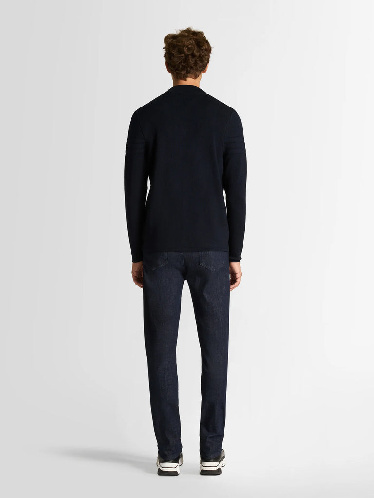 The Bastien cardigan is made from premium Italian wool. Designed like the Damien sweater, this cardigan features a varsity collar and padding on the sleeves. Zipped up in front, it can be paired with a T-shirt or polo shirt for a sophisticated casual look.