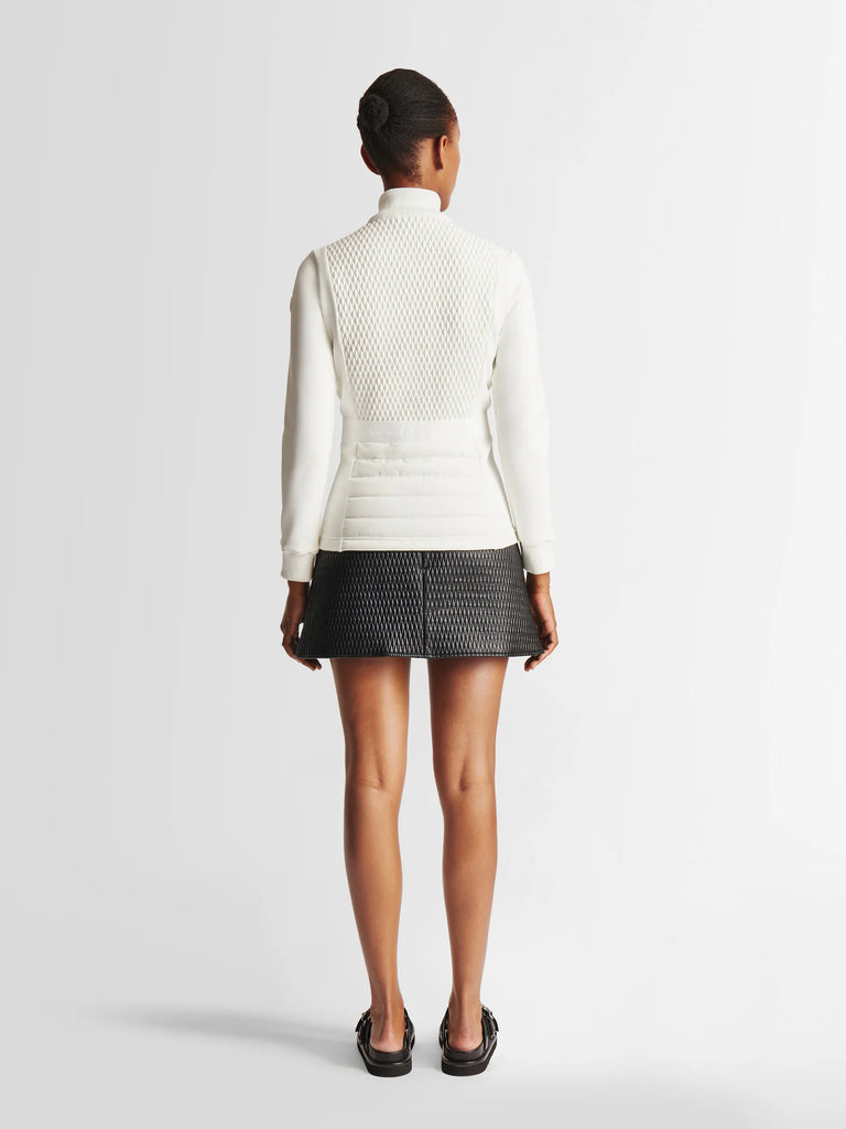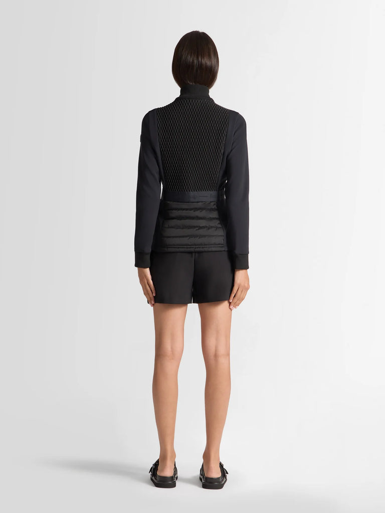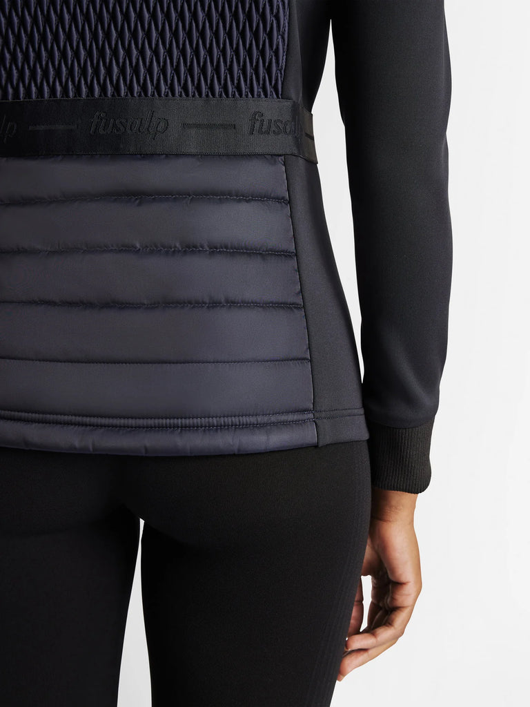 Its design is based on the brand's DNA : diamond smock padding, use of water-repellent satin nylon on the front and back, side panels and sleeves in fleece, collar and cuffs in ribbed mesh and the Fusalp monogrammed elastic at the waist.