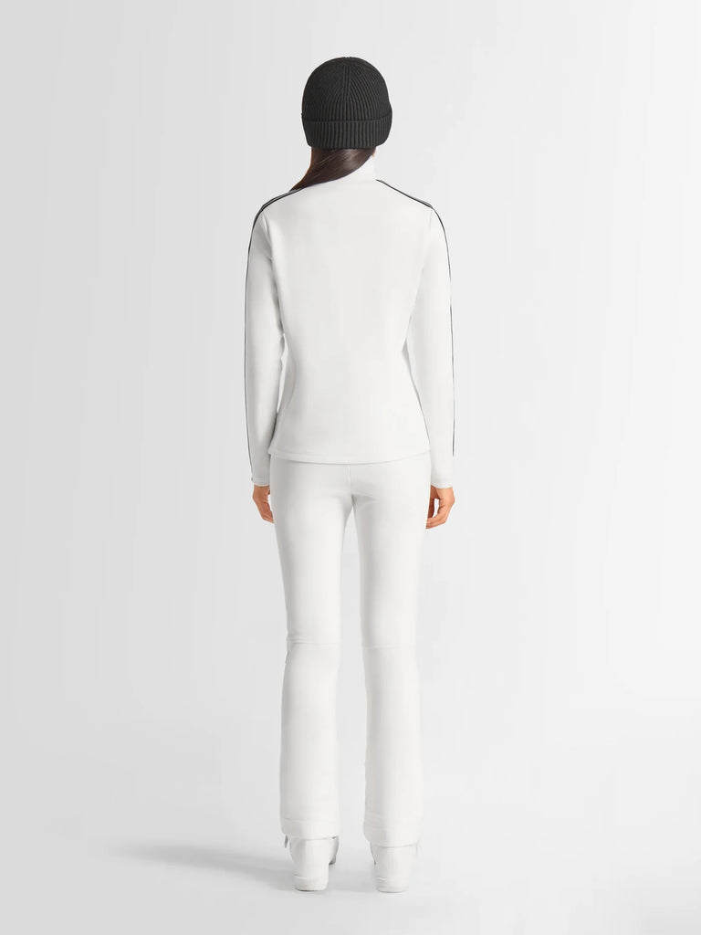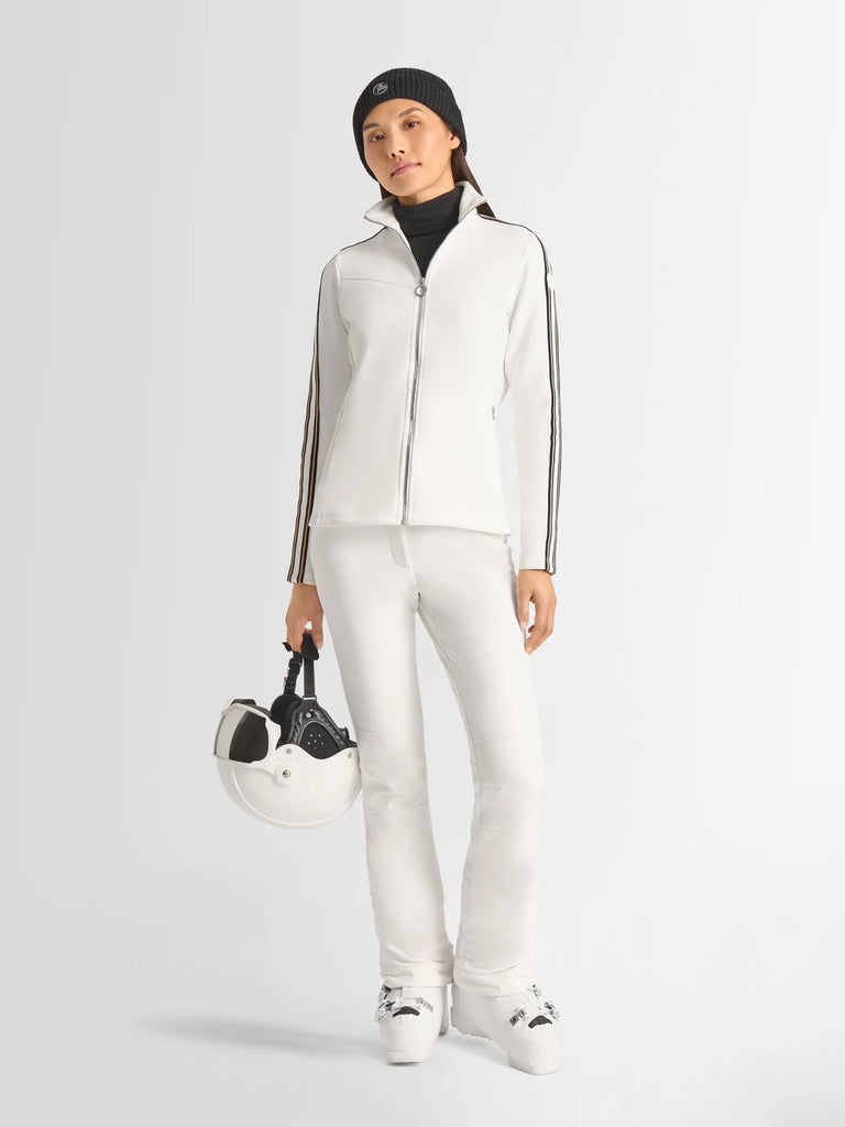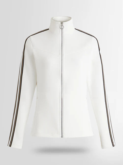 The Odella lightweight jacket is a key asset in any women's ski wardrobe. Crafted from neoprene-effect interlock, it boasts a heritage look, thanks to the tricotine along the shoulders and sleeves. A high collar, shiny zippers, and a zipped opening complete this thin and warm style, which will easily slip under a ski jacket.