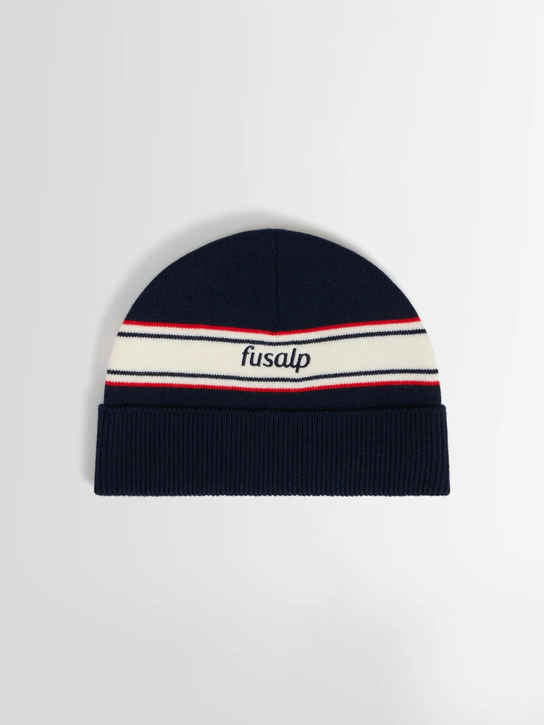 This Retro beanie, made from 100% wool, offers warmth and comfort. Its tricolor, 9-gauge double-sided jersey knit gives it a soft texture and unique style. The embroidered Fusalp logo adds a stylish retro touch, making this beanie an authentic and trendy piece to wear on any occasion.