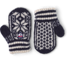 A soft and warming mitten for the very smallest adventurers. Fair Isle knitted in a wool blend in a classic Nordic pattern with a ribbed cuff. Perfect for keeping tiny hands warm at the coldest times of the year. Note: size 0 does not have a thumb.