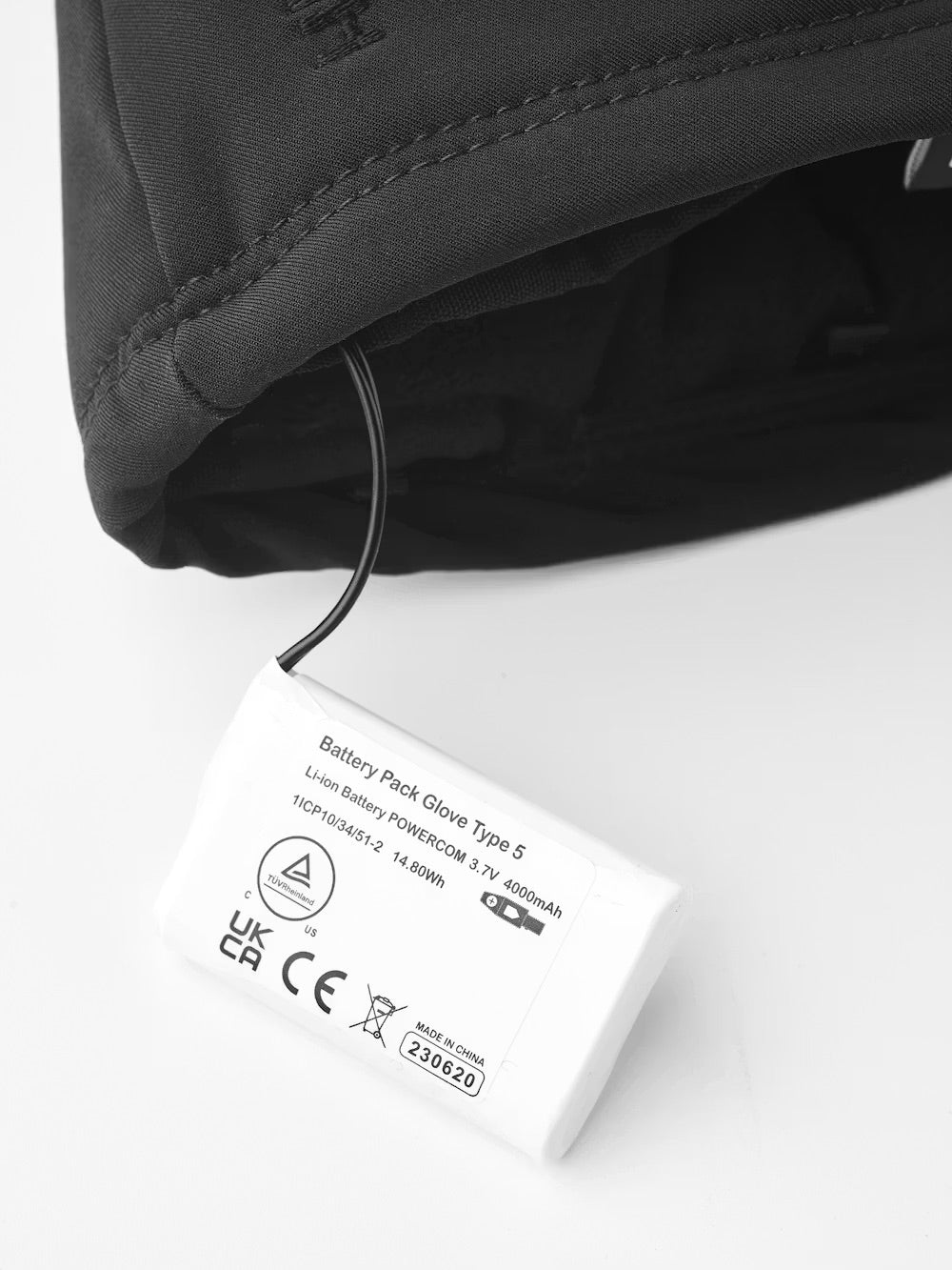 You can test the heating function by fully charging the batteries and turning the heating system to its highest setting. After a few minutes, put on the gloves and all your fingers should feel distinctly warm. Keep the heated panels on at the highest setting and check that the heating system’s LEDs remain lit for about 2–2.5 hours (applies to 4000 mAh battery pack).
