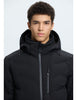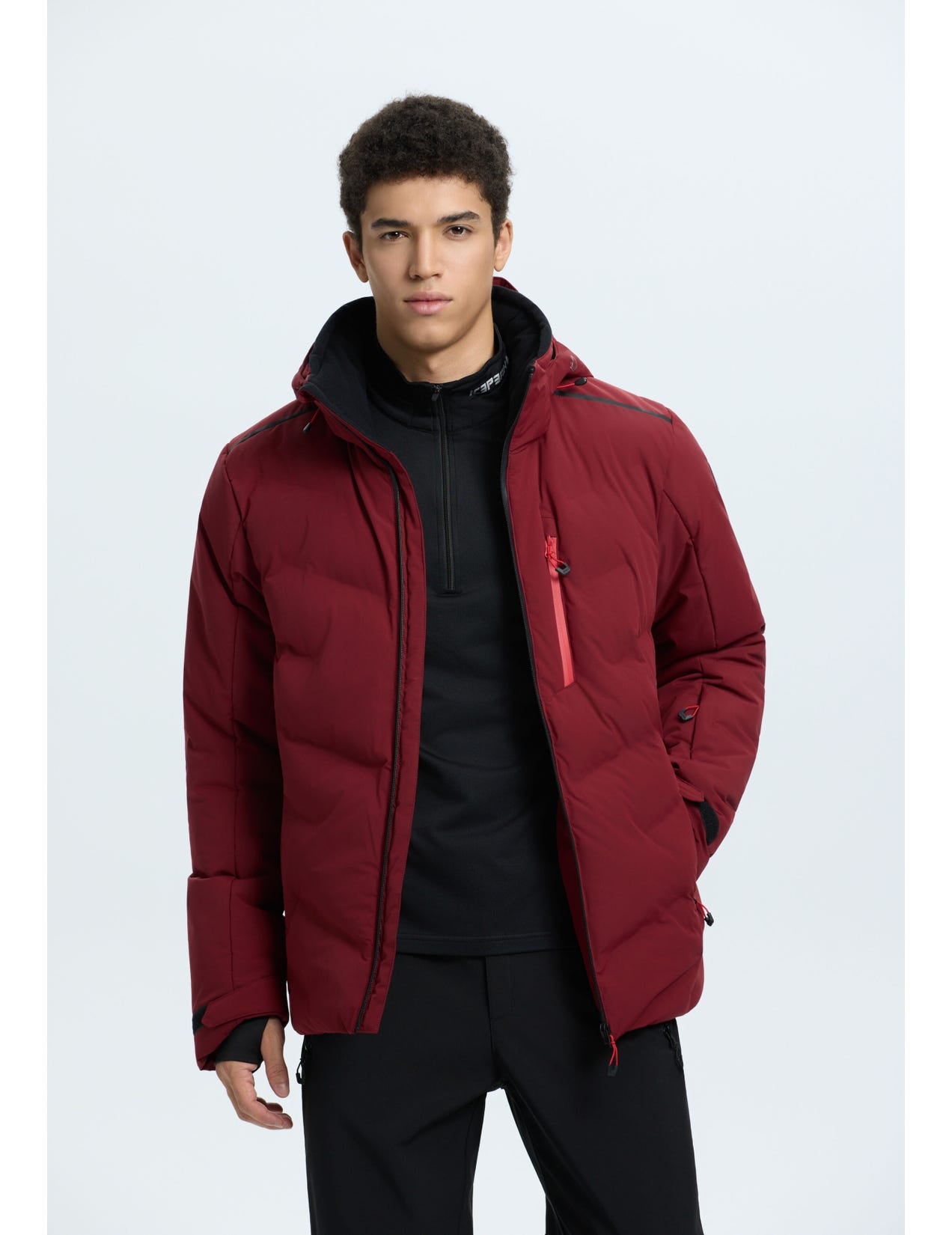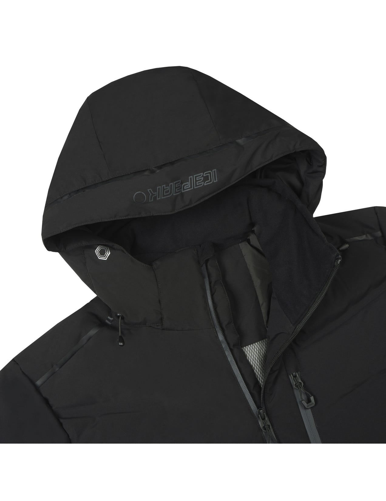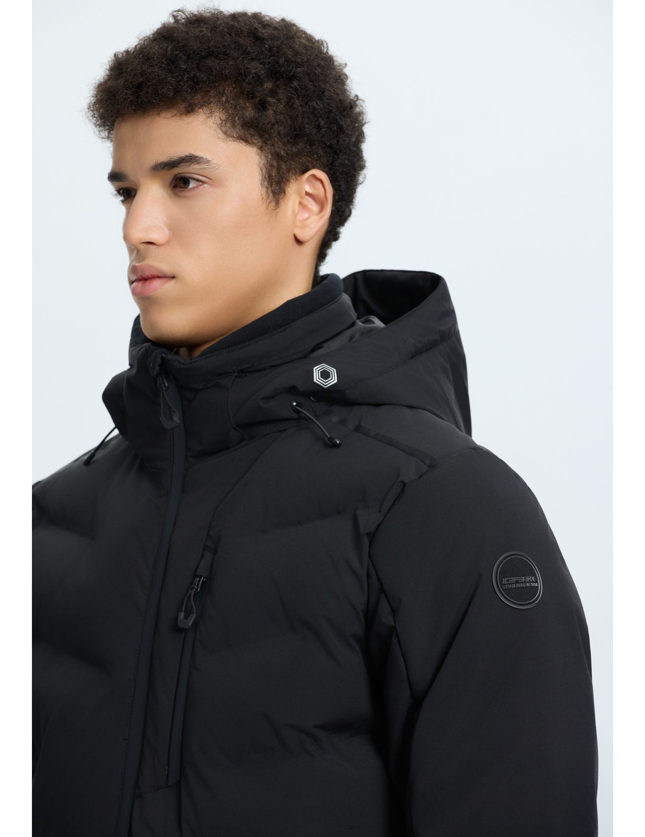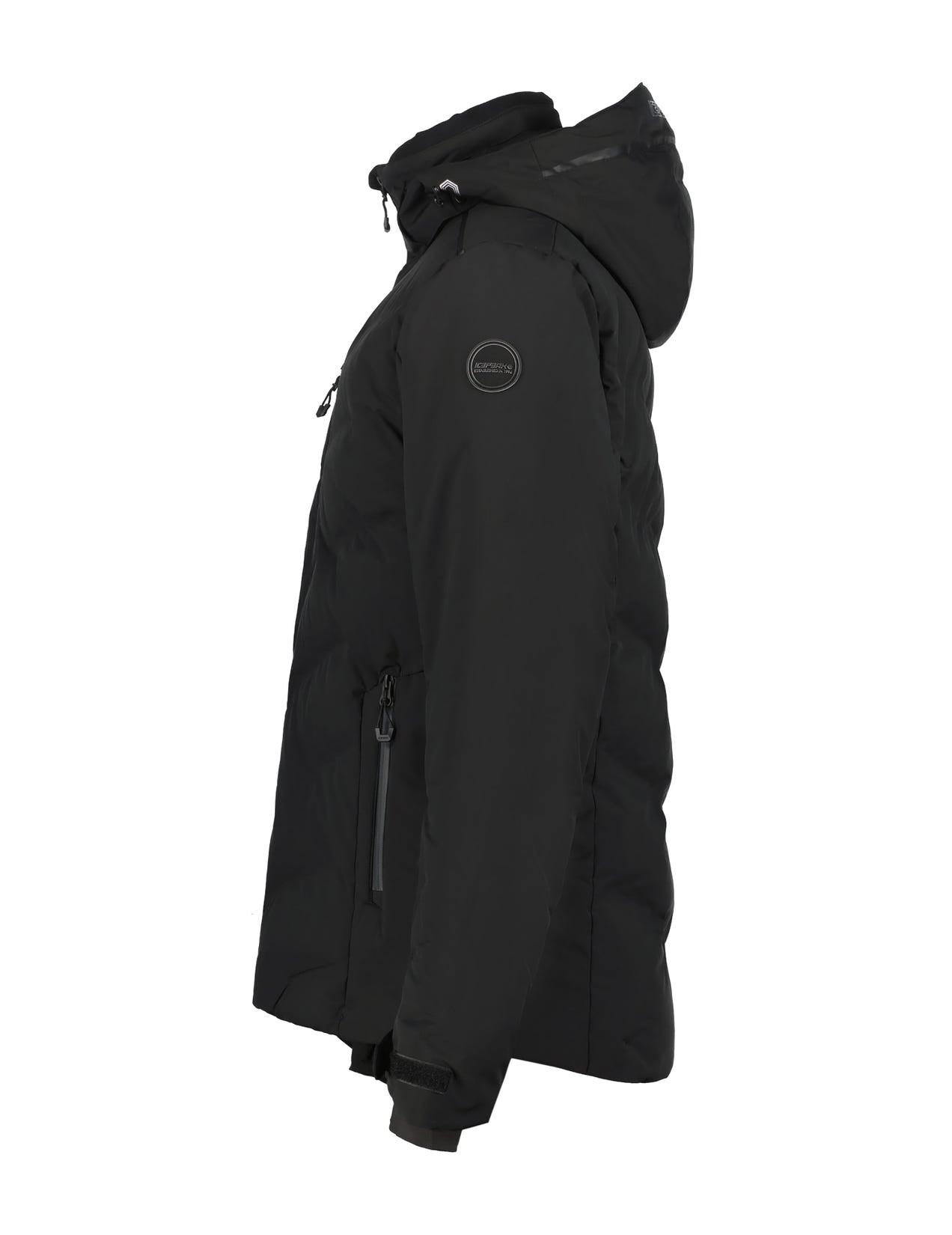 Icepeak wadded jacket for men. Articulated elbows. Comfortable inner collar. Two-way-adjustable hood. Detachable hood. Adjustable cuffs. Elastic inner cuffs with thumbholes. Two front pockets with water-repellent zips. Lined hand warming pockets. Chest pocket with a water-repellent zip. Large internal mesh pocket. Internal zip pocket. Ski pass pocket on the sleeve. Water-repellent front zip. Chin guard on the front zip. Adjustable hem. Fixed snow gaiter. Snow gaiter with anti-slip silicone band. Water column 10 000 mm. Breathability 10 000 g\m2\24h. When designing this A.W.S. ACTIVE product, special attention has been paid to functionality and comfort, so the product is suitable for both active and casual use. Made of a 2-layer fabric, in which a waterproof membrane is bonded to a multifunctional material. The 2-way stretch material increases the freedom of movement. The fabric surface has been treated with a water-repellent finish. This windproof material provides optimal wind protection and warmth.