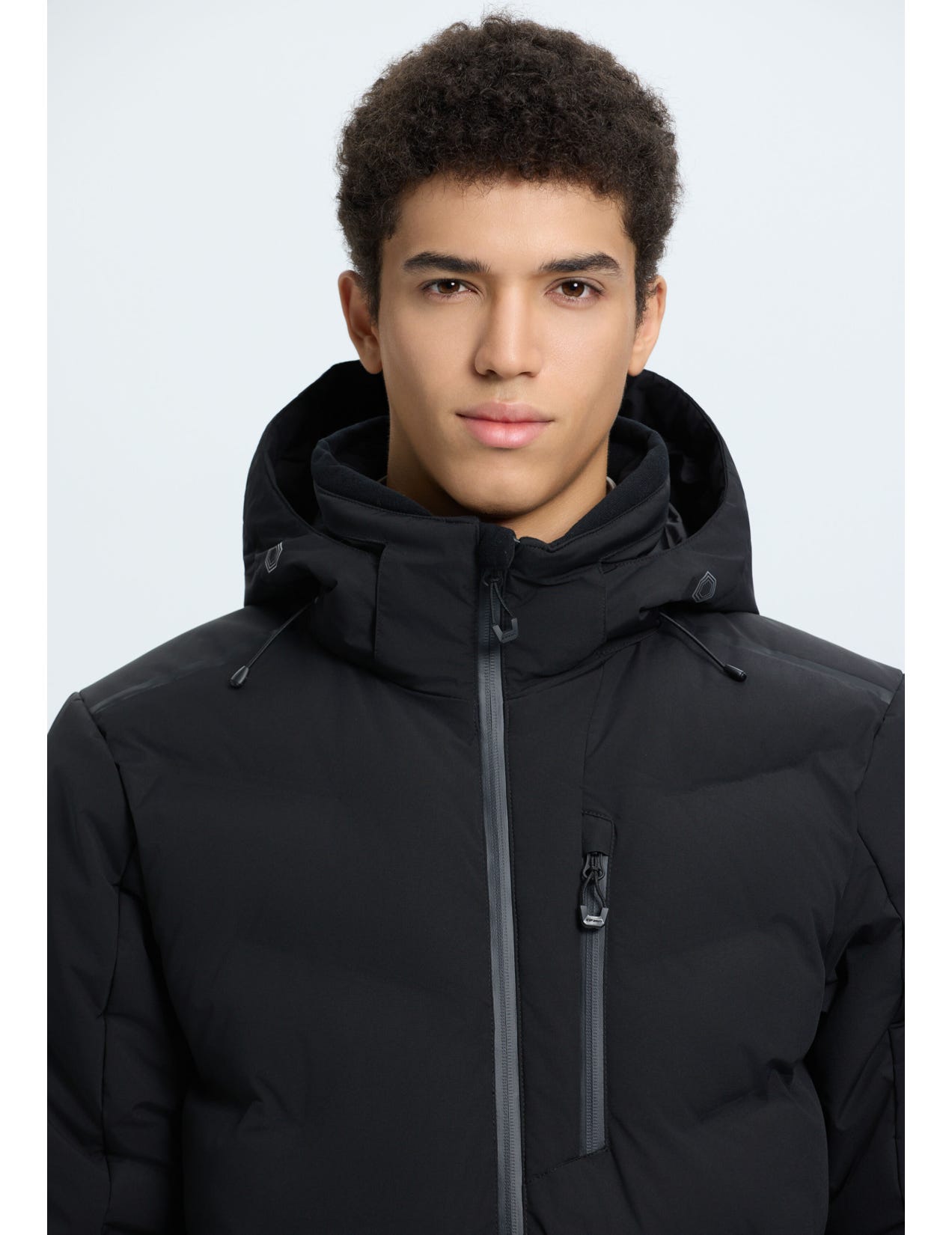 - Chin guard on the front zip