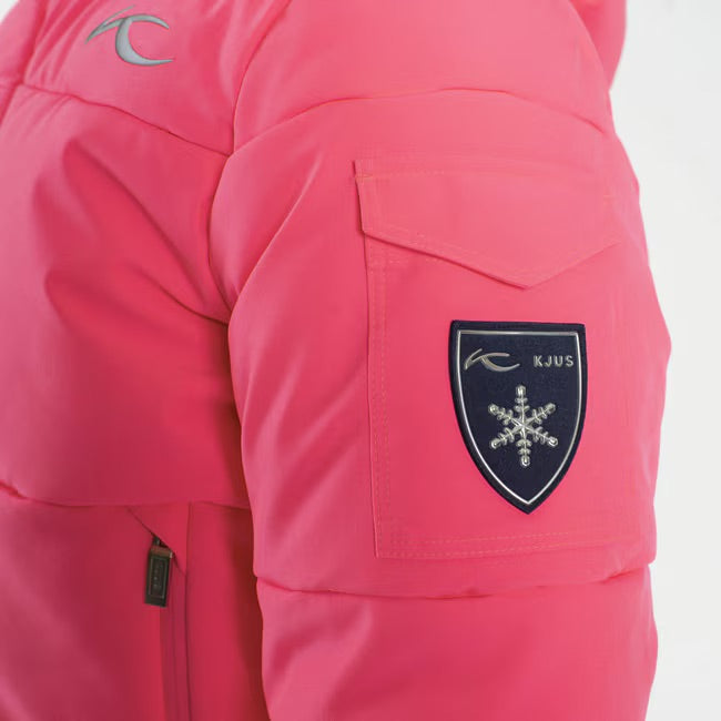 The fixed hood and adjustable snow skirt add versatility and functionality, while the KJUS Growth System in the sleeves ensures extended wear. The perfect blend of function and performance for any winter adventure.