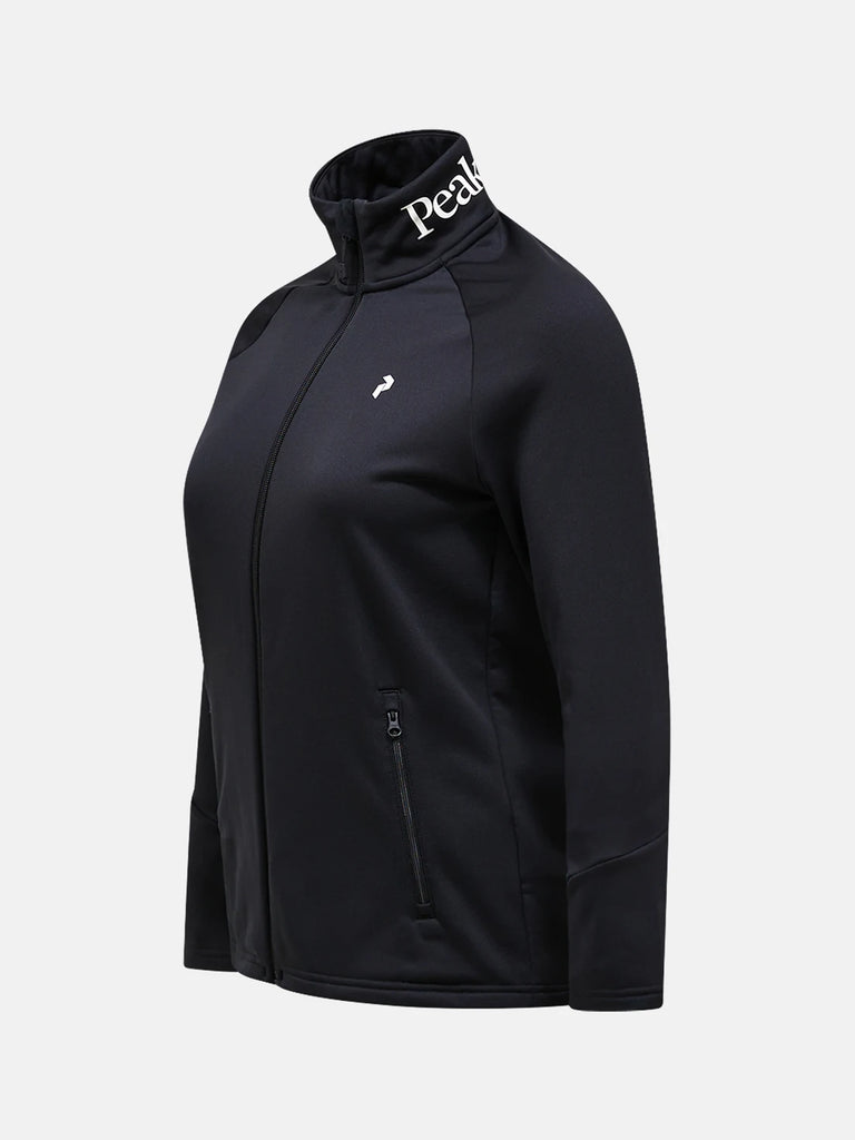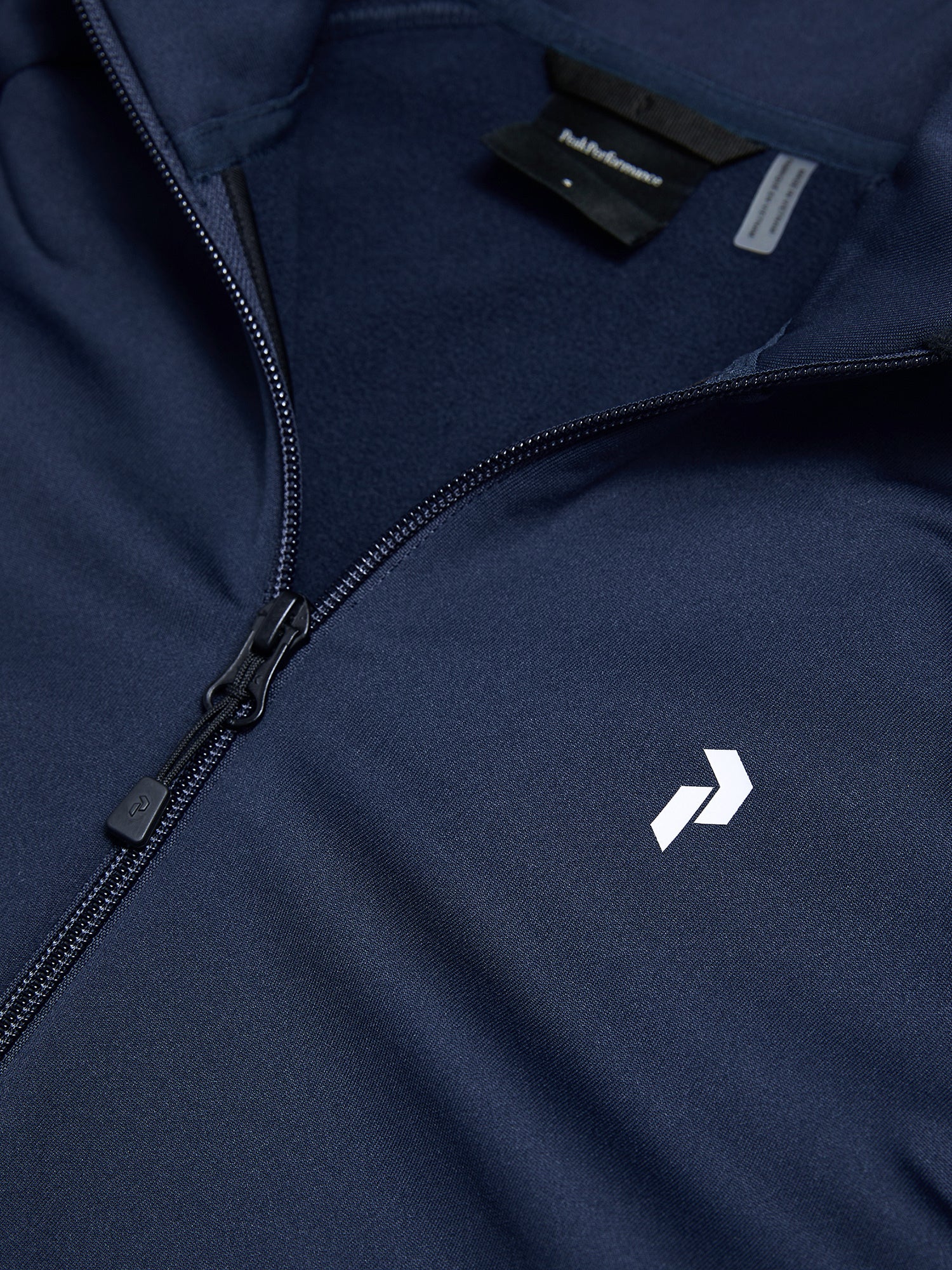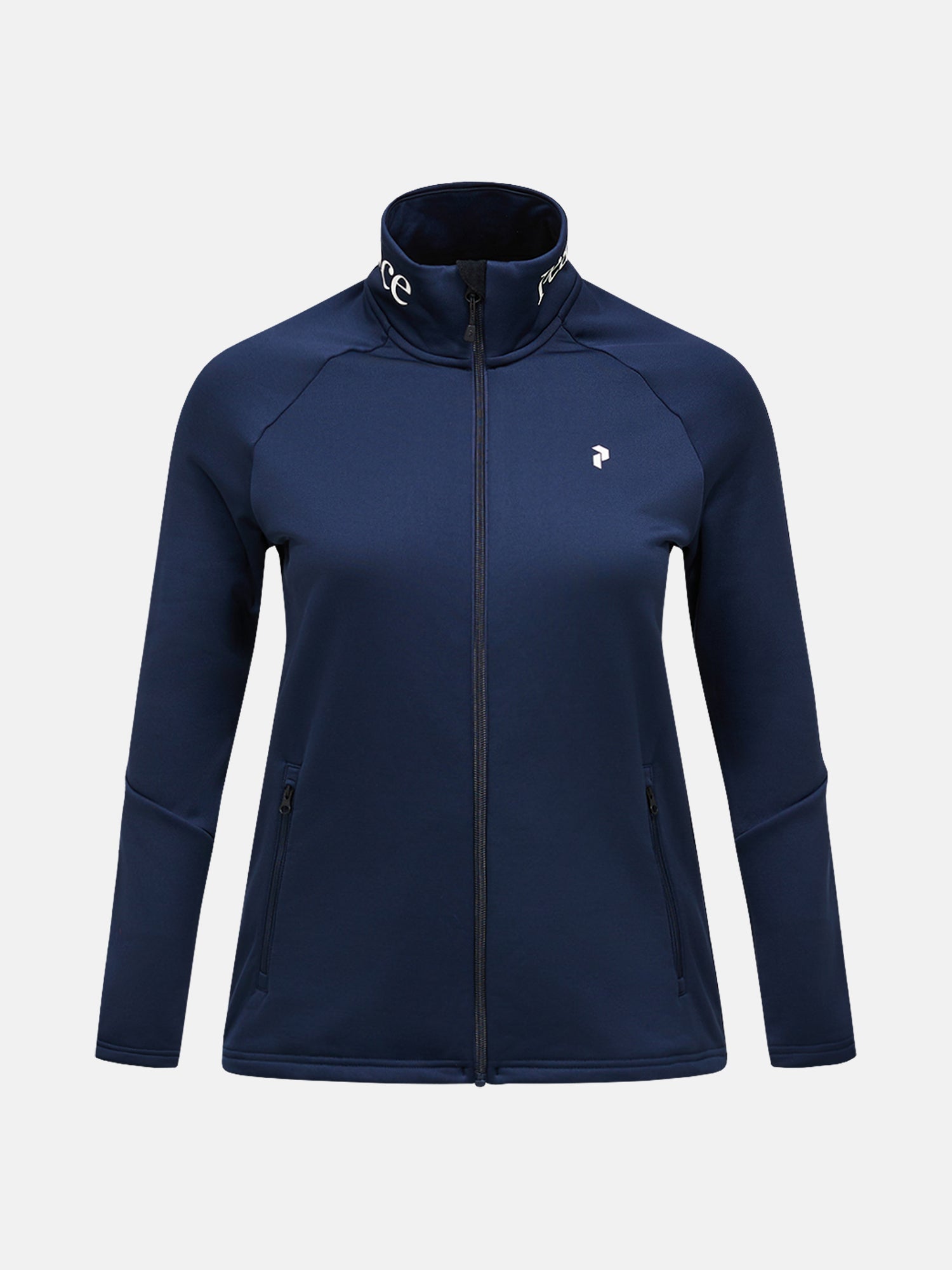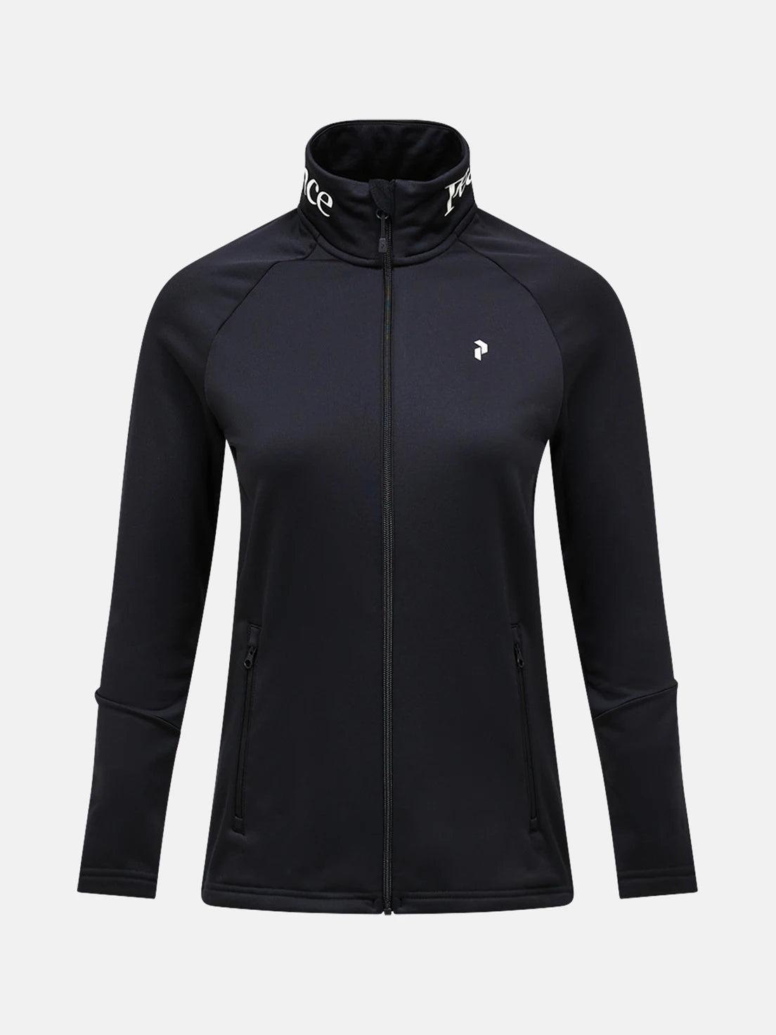 This soft and stretchy mid-layer jacket is perfect for any outdoor adventure, from skiing to hiking. Made from a comfortable technical fabric that dries quickly, even during strenuous activities. It features a double-layer collar with a chin guard for a cozy fit with no chafing and zipped hand pockets.