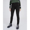 - Skinny fit, intended to sit below the waist and is narrow through the thigh and leg