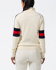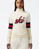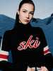 The Neve sweater is a fitted style with a cosy rib-knit turtleneck. Featuring a 'Ski' intarsia design on the centre-front. Crafted from extra fine merino wool, it's the perfect luxury layer to pair with your sleek Aurora flare pants.