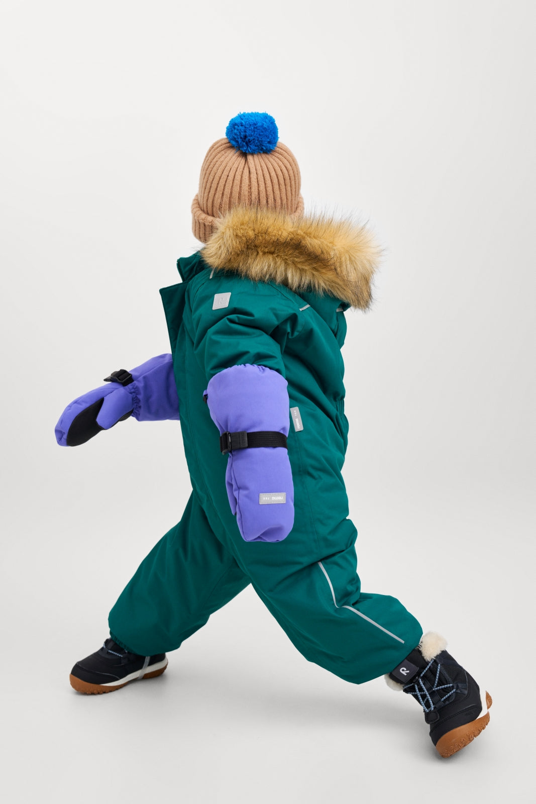 Made with durable synthetic uppers and flexible rubber outsoles, each pair delivers reliable traction on slippery surfaces. They feature a removable insole with comfortable cushioning and wadding insulation that keeps little feet warm. Sizes up to 24 are entirely without heel drop, making them a good choice for the first years of walking. A sealed-seam insert helps lock out moisture while a Happy Fit print ensures accurate sizing. The boots are embellished with reflective details for nigh time safety. Fluorocarbon free. 100% vegan.