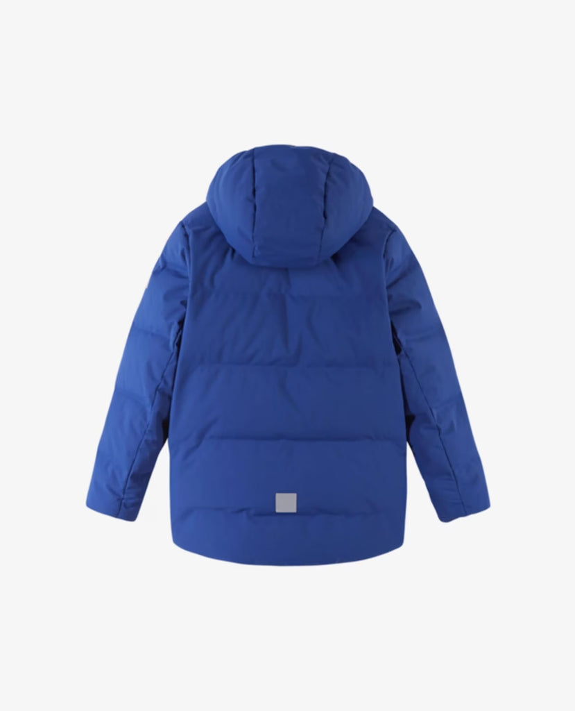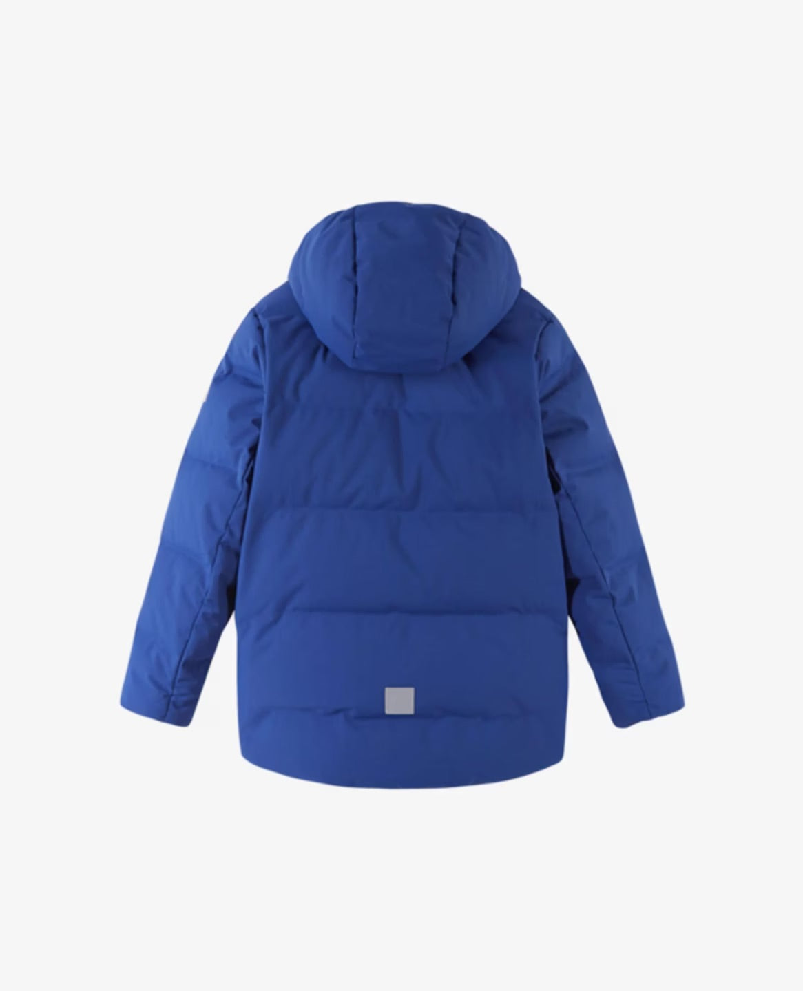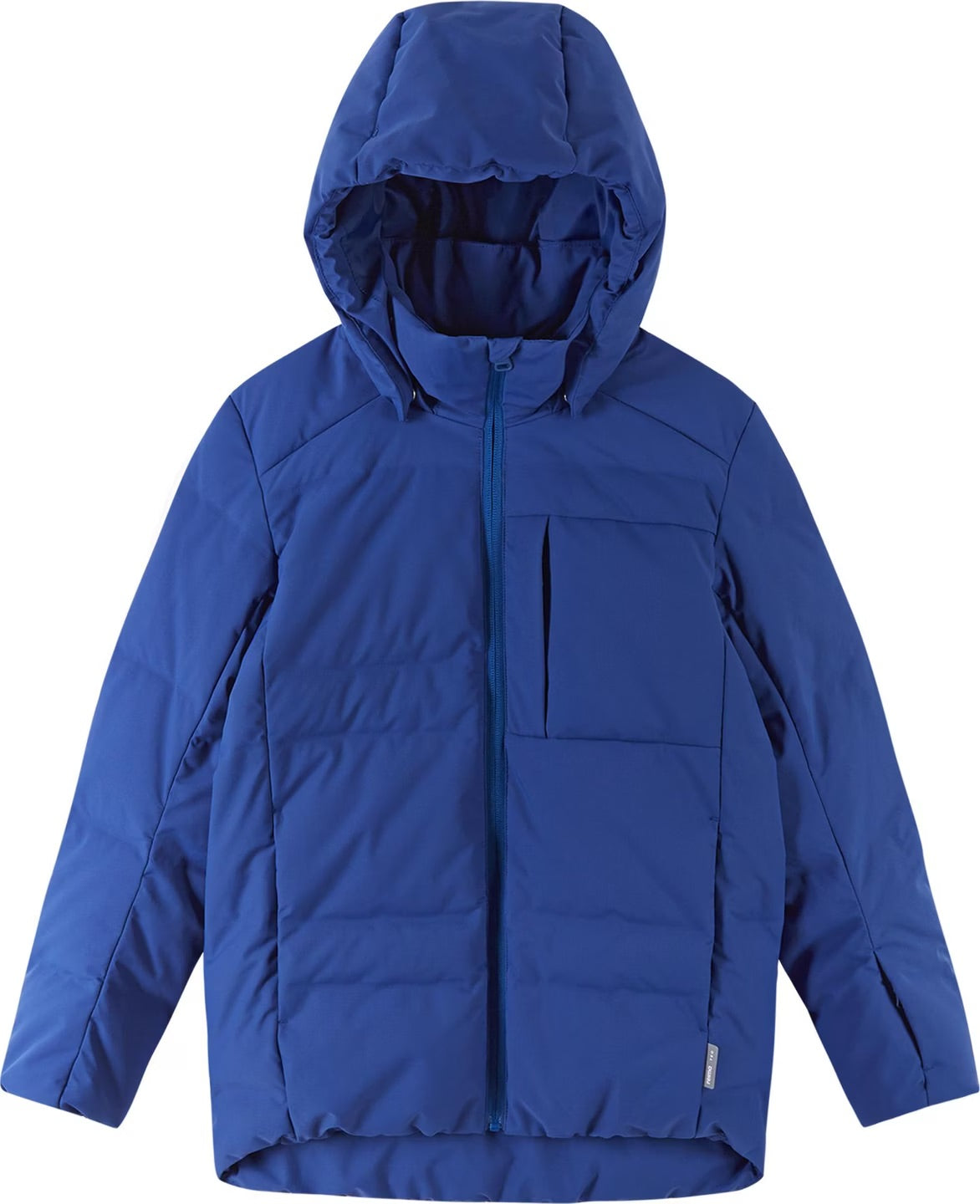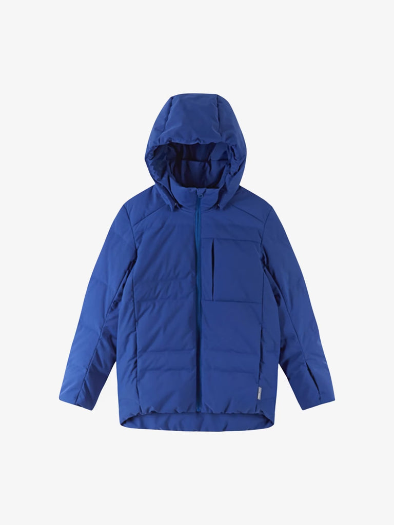 This down ski jacket for children and teenagers stands out for its outstanding functionality. It is made from sustainable Reimatec recycled material that is waterproof, windproof, dirt-repellent, and breathable. Insulated with responsibly sourced warm down and feathers, it has sealed seams to keep water out.