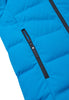 This kids and juniors' down ski jacket is super functional. Made from technical Reimatec recycled stretch material that's water- and windproof as well as dirt-repellent and breathable. The smooth lining and durable zipper make dressing easier, while snowlocks at the waist and cuffs ward off wetness. The detachable hood not only protects from chilly wind but is also safe. Get a more casual look by removing it and hiding the snap buttons.