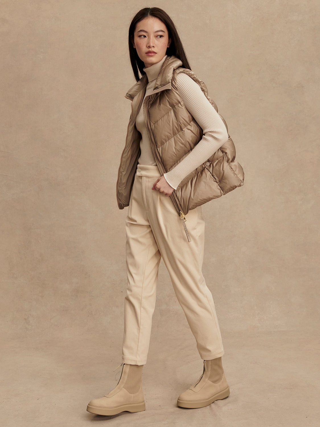Made for transitional layering, the Bextor gilet is an elegant top layer that offers lightweight warmth in a stylish silhouette. Crafted from our Super Light Ripstop fabric with a soft pocket lining and an insulating down fill, it is super comfortable to wear, while keeping the cold out. Complete with an internal waist cinch, double-ended zips, and a zip-through collar with a Varley-branded puller.
