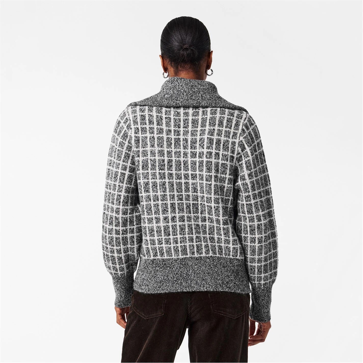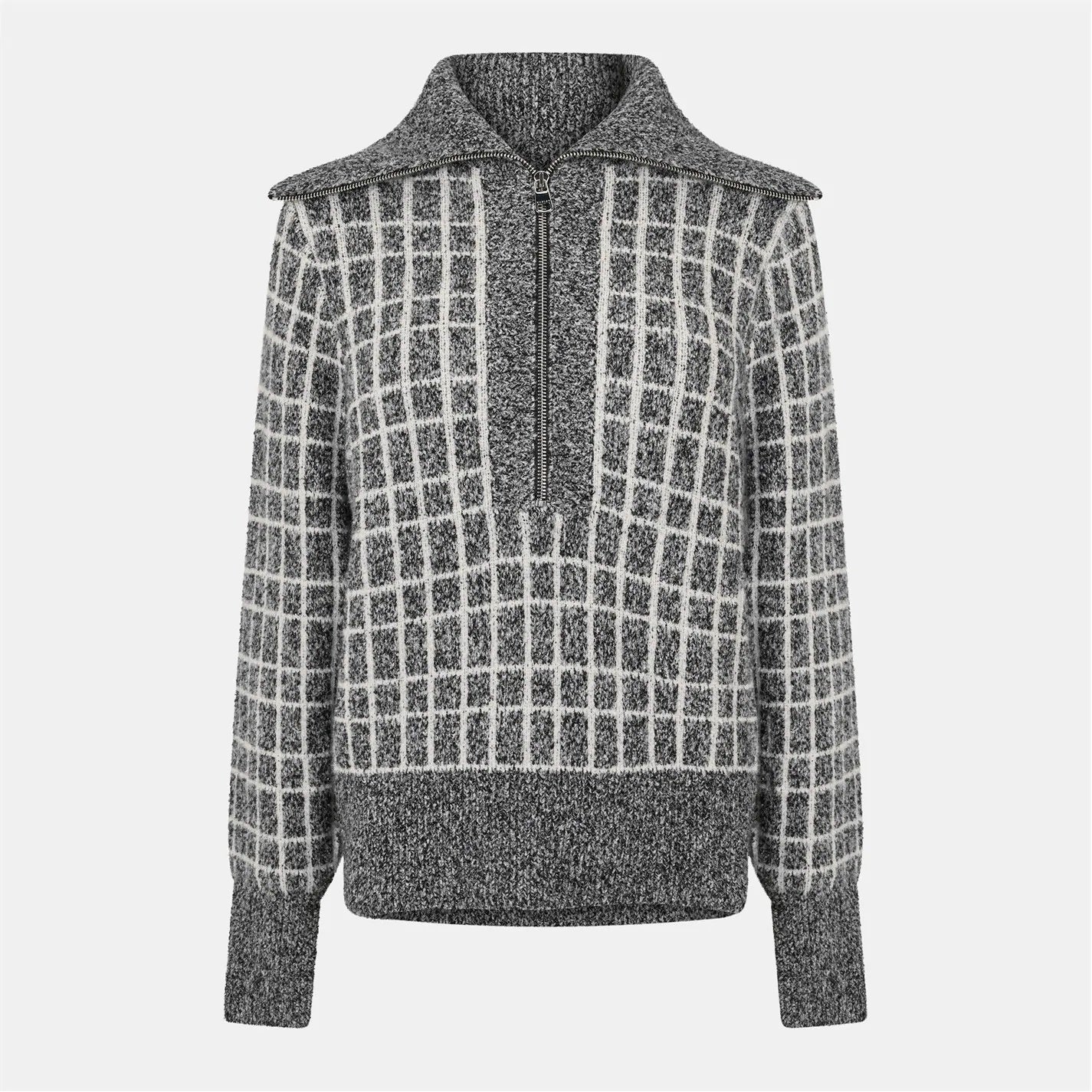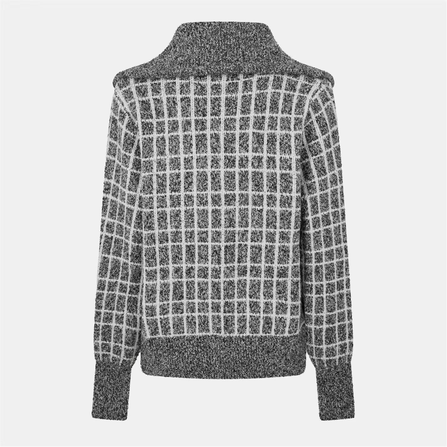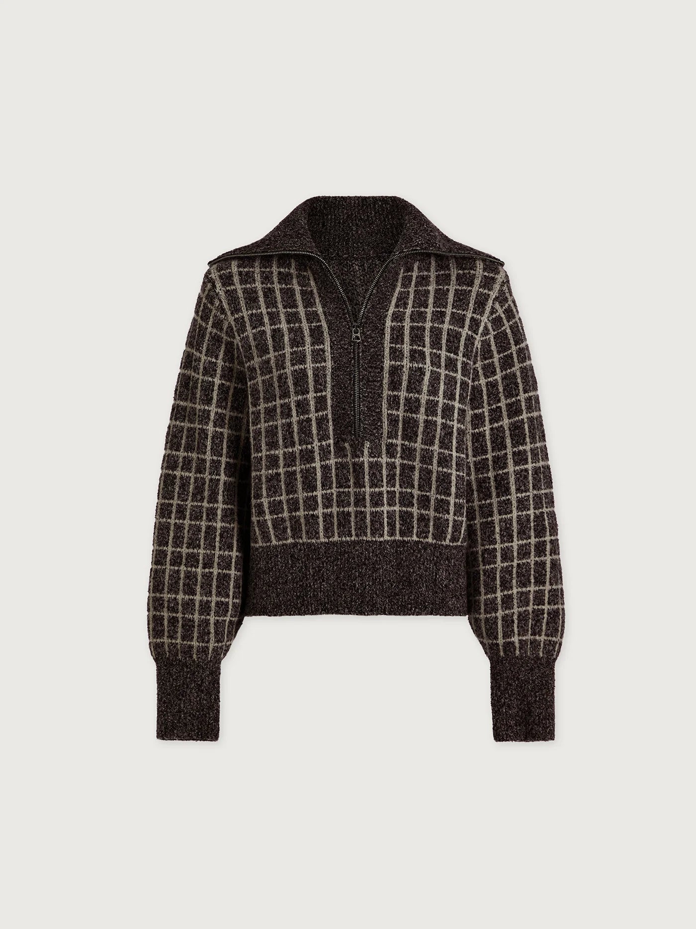 Set a statement with the Furley. A classic half-zip sweat with a turn-back collar, the Furley is an easy throw-on knit, made for elegant layering. Crafted from a Plush Bouclé Jacquard in a checkered pattern, it offers a soft texture, perfect to wrap up in.