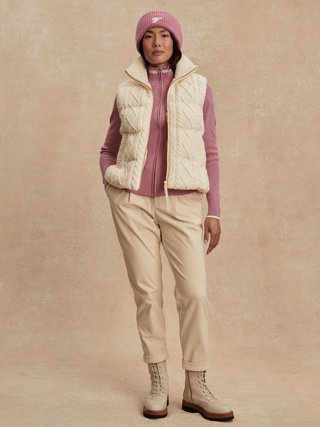 Add an extra layer of style to your look with the Irina gilet - a contemporary outerwear style with a knitwear twist. It's padded with a DuPont Sorona® fill to keep you warm and is elevated with classic cable stitching in a plush knit. It's complete with a chunky rib knitted collar, pockets, and a practical double-ended zip.