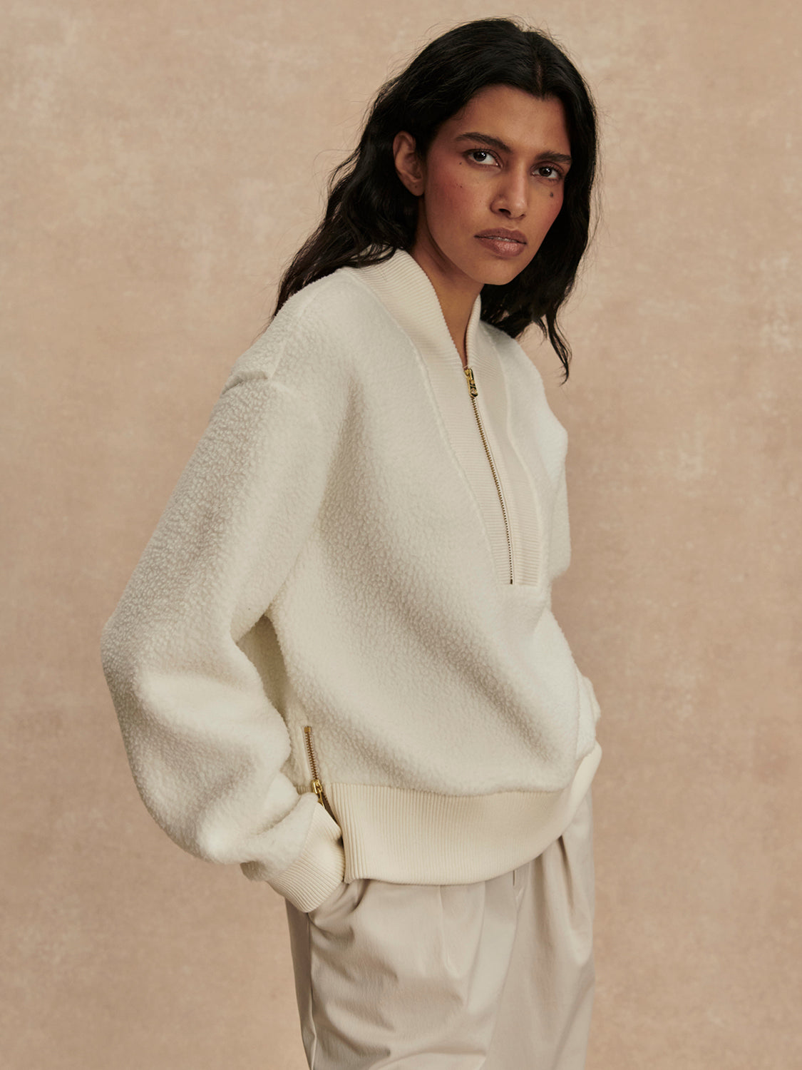 Inspire your seasonal wardrobe with this elevated take on a half-zip fleece. Made from our soft and insulating Plush Borg Fleece, the Mumford is accentuated with a ribbed hem, cuffs, and a panel along the front zip. Cut to a relaxed fit with loose sleeves and a contemporary neckline, it delivers all-day comfort with style.